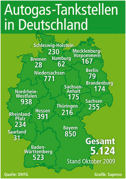 Ein flächendeckendes Angebot in sämtlichen Bundesländern, von dem nicht nur die Deutschen profitieren: Noch vor einigen Jahren mussten z. B. niederländische Autogas-Fahrer vor ihrer Fahrt durch Deutschland eine spezielle Route mit sorgfältig geplanten Tankstopps ausarbeiten. Inzwischen finden sich auch an den Autobahn-Tankstellen so viele Autogas-Zapfsäulen, dass niemand mehr Umwege einlegen muss. Ob Autobahn, Landstraße oder Innenstadt – damit die nächstgelegene Autogas-Station tatsächlich jederzeit auf schnellstem Wege gefunden wird, bietet der Deutsche Verband Flüssiggas e. V. (DVFG) verschiedene Informationsmöglichkeiten im Internet. Unter www.autogastanken.de lässt sich für jedes Bundesland eine aktuelle Auflistungen der Stationen anzeigen, jeweils mit Adresse, Anfahrtshinweis, Telefonnummer und Öffnungszeiten sowie einem praktischen Link zu Routenplaner und Straßenkarte. Alle Länderverzeichnisse können auch im PDF-Format heruntergeladen werden, ebenso wie eine komplette Auflistung der Autobahn-Stationen. Außerdem gibt es die Möglichkeit, über Eingabe der Postleitzahl die Autogas-Tankstellen im Umkreis jedes beliebigen Standorts in Deutschland zu ermitteln.