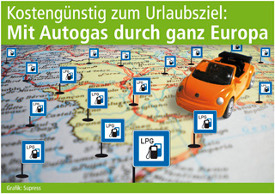 So manche Reise-Finanzplanung gerät auf diese Weise zur Makulatur, noch bevor überhaupt das Gepäck im Kofferraum verstaut ist. Ein Umstieg auf den steuerermäßigten Kraftstoff Autogas wird deshalb immer häufiger auch zur Option für die Urlaubsfahrt. Gerade dort, wo viele Kilometer zurückgelegt werden müssen, mildern die wesentlich niedrigeren Tankkosten an den Autogas-Zapfsäulen den fatalen Schwund in der Ferienkasse. Vielfach herrscht allerdings vor der Kaufentscheidung für ein Autogas-Fahrzeug immer noch Unsicherheit, ob solche Zapfsäulen auch jenseits der Landesgrenzen in ausreichender Anzahl zur Verfügung stehen.
