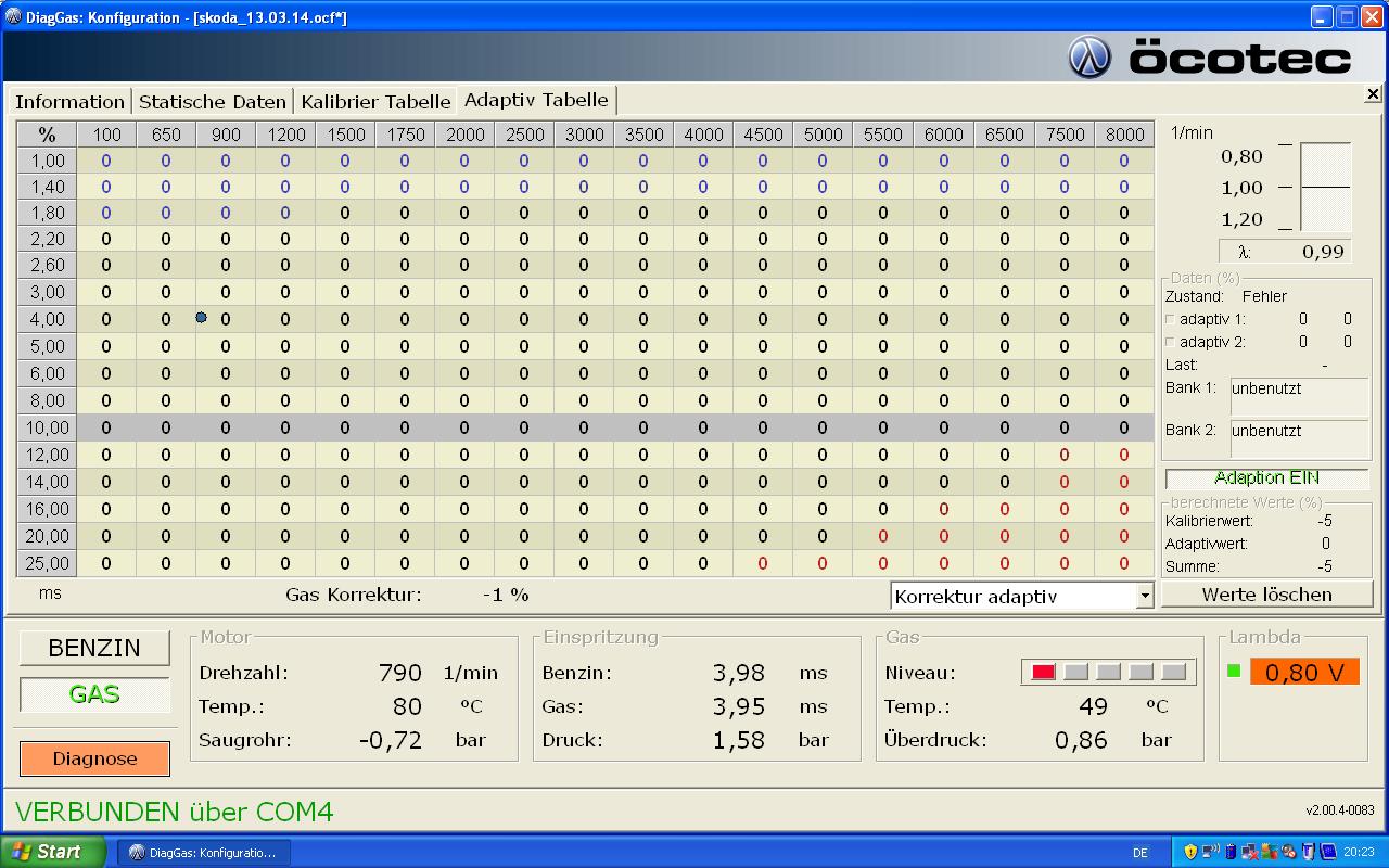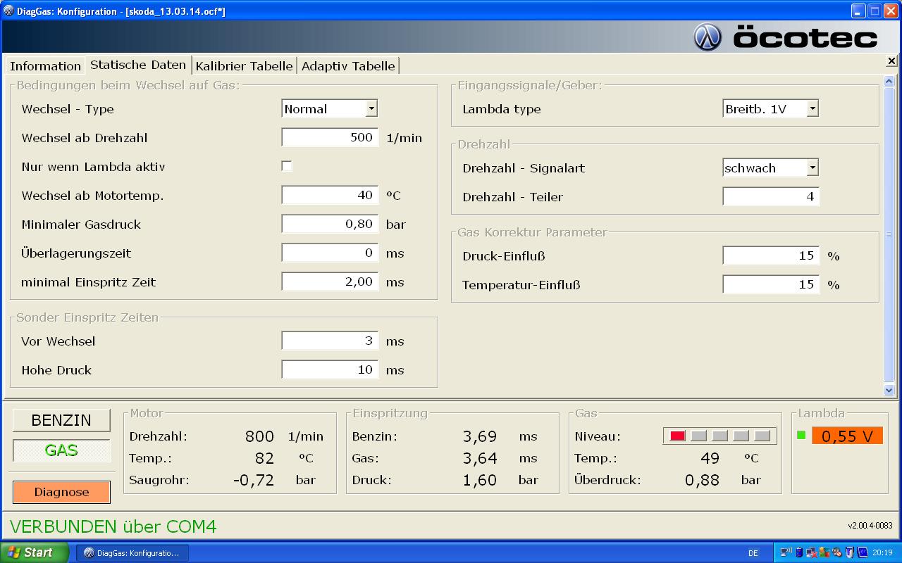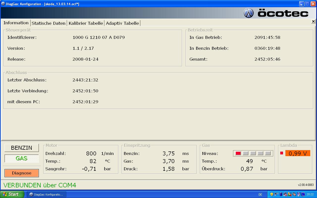 mein Auto ist mit einer Oecotec Digigas 3-8vag e ausgestattet Eingetragen im Fz-Schein seit Mai 2007. Leider hat sich bei dem Wagen der Katalysator verabschiedet und musste getauscht werden. Seit dem Tausch läuft der Wagen im Gasbetrieb etwas unrund und in der Werkstatt sagte man mir, die Anlage müsste neu eingestellt werden (weder Kabel noch Software in der Werkstatt vorhanden)!