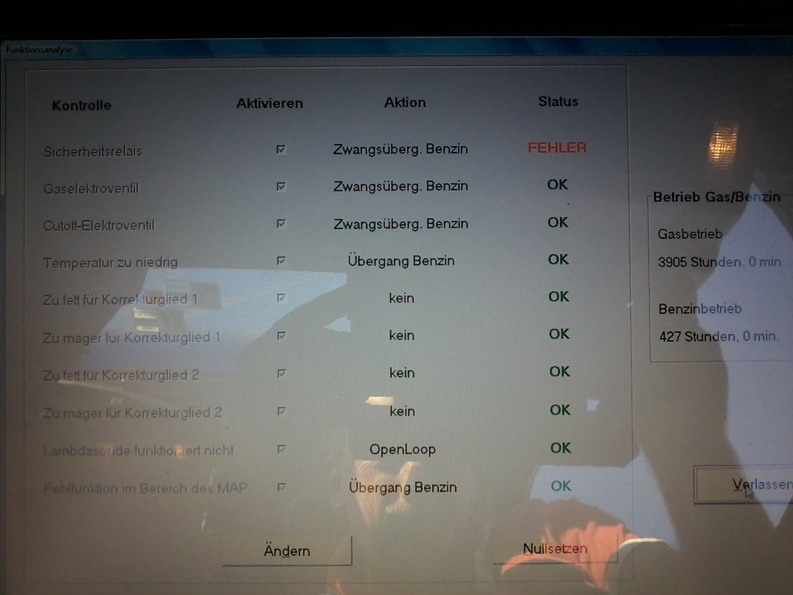 Der einzige Fehler,der auszulesen ist,bezieht sich auf ein Sicherheitsrelais,welches zwangsmässig auf Benzinbetrieb umschaltet. Ich versuche mal Fotos vom Bildschirm zu machen, hoffendlich erkennt man was.